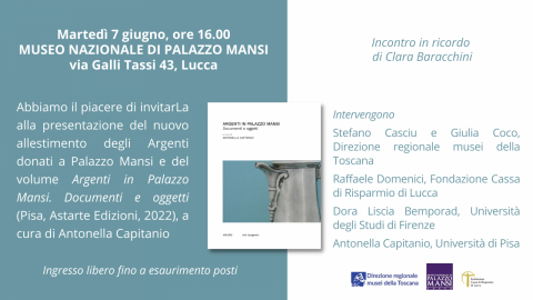 Nella stessa occasione saranno presentati anche il volume, a cura di Antonella Capitanio, Argenti in Palazzo Mansi. Documenti e oggetti (Pisa, Astarte 2022), dedicato a questi splendidi manufatti e un Inventario settecentesco degli Argenti di Casa Mansi, anch'esso appena donato al Museo, che torna nella sua destinazione originaria, restituendoci una fondamentale testimonianza della vita a Palazzo e un importante tassello nella conoscenza della produzione orafa a Lucca nel XVIII secolo.