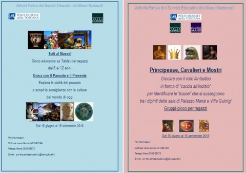 I Servizi Educativi dei Musei Nazionali di Lucca propongono Percorsi Educativi per ragazzi: oltre ai due percorsi presentati di seguito, Tutti al Museo! e Principesse, Cavalieri e Mostri entrambi Percorsi-Gioco, si realizzeranno percorsi didattici appositamente ideati secondo le necessità e le curiosità dei gruppi partecipanti.