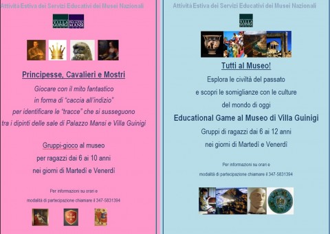 I Servizi Educativi dei Musei Nazionali di Lucca, Palazzo Mansi e Villa Guinigi, presentano alle scuole estive due "percorsi-gioco" per ragazzi, in modo che anche durante l'estate si possano organizzare attività didattiche per gruppi strutturati all'interno dei musei.