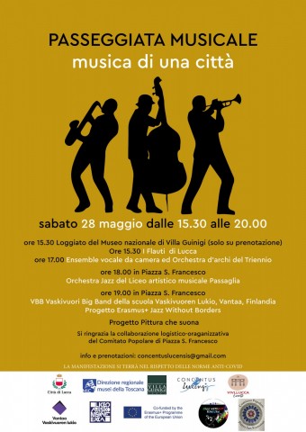 L'appuntamento continua alle 18.00 in piazza San Francesco con le esibizioni delle orchestre Jazz del Liceo artistico musicale Passaglia e della Scuola Vaskivuoren Lukio di Vantaa in Finlandia.