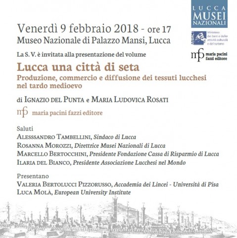 Venerdì, 9 Febbraio, 2018Vi aspettiamo venerdì 9 febbraio per la presentazione del volume "Lucca una città di sata" ore 17, Museo nazionale di Palazzo Mansi