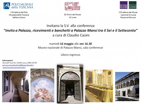 Il ciclo di incontri per celebrare i 40 anni dall’apertura del Museo di Palazzo Mansi continua martedì 16 maggio alle ore 16.30 con la conferenza a cura di Claudio Casini “Invito a Palazzo, ricevimenti e banchetti a Palazzo Mansi tra il Sei e il Settecento”. Palazzo Mansi, una delle dimore signorili più lussuose della città, ha ospitato ambasciatori, principi e re durante le loro visite di Stato: nel 1690 è stato qui il principe Guglielmo Filippo di Neuburg, figlio dell'Elettore Palatino; l’anno successivo è la volta di Gian Gastone de' Medici con Violante di Baviera; nel 1692 e nel 1706 i Mansi aprono la loro residenza a Federico IV re di Danimarca e di Norvegia. In queste occasioni si organizzavano feste da ballo con “copiosa sinfonia di vari strumenti”, e banchetti di cui rimangono preziose note sui cibi e sulle bevande presentati durante i fastosi convivi: dalla selvaggina ai pesci, dai dolci di mandorle alla cioccolata fino ai vini più ricercati e ai sorbetti di limone, di cedro e di pesca. La stessa ricercatezza dei cibi ha accompagnato anche momenti conviviali della famiglia, in particolar modo in occasione di matrimoni celebrati a palazzo.